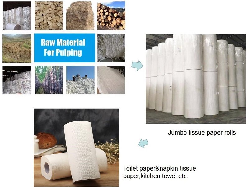 Tissue paper making machine is mainly from raw materials (waste paper,wood pulp or bamboo etc) to semi-finished products(jumbo tissue paper rolls).