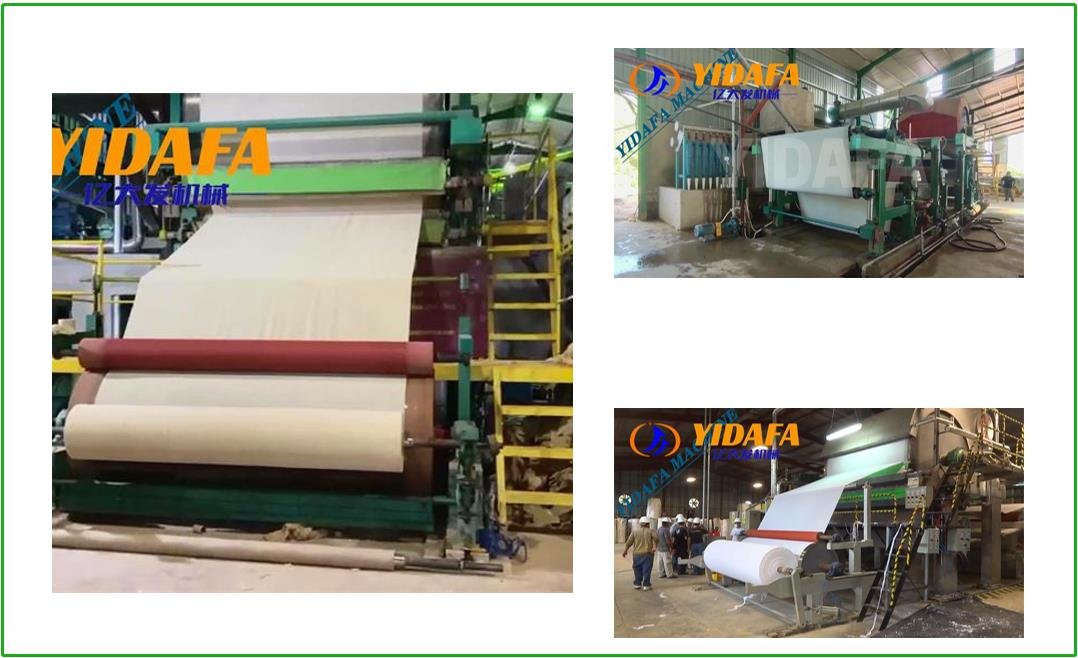 YIDAFA toilet paper making machine has waste paper pulp machine (or chemical pulp machine) and parent tissue toilet paper roll making machine.