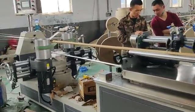 It is mainly used for making small diameter and short length paper cores,such as plastic film cores,electrionic fireworks cores and wrapping paper cans. Number of paper layers:2~7 Paper tube diameter:15~76mm. The thickness of paper tube :1~5mm. Mini paper tube cutting lengh:90mm Main power:7.4kw.