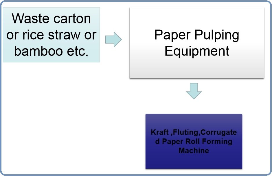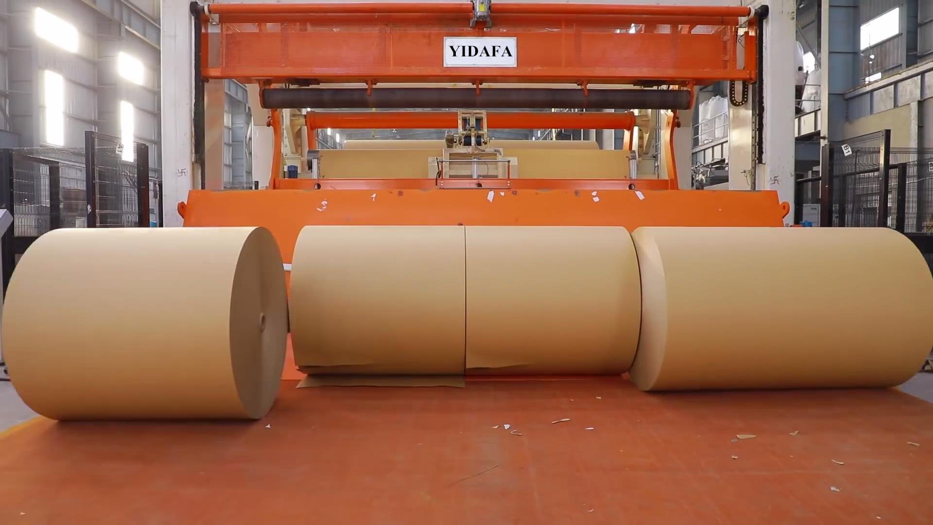This machine could make kraft paper or corrugated paper rolls from rice straw or wheat straw